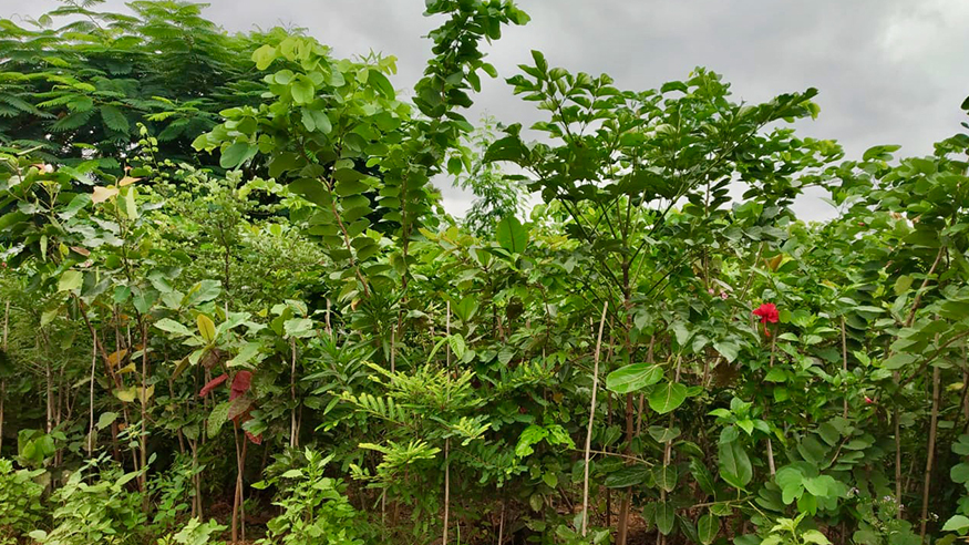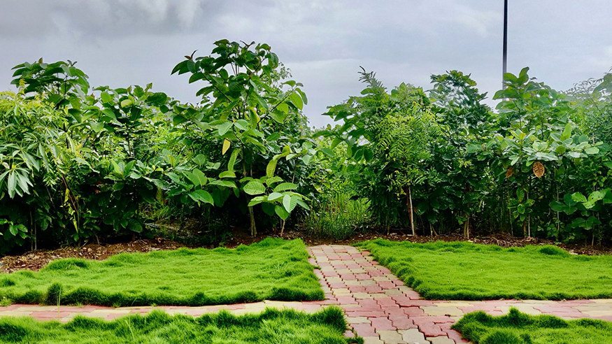 In this method, 3-5 saplings are planted per square meter with a minimum of 20-50 different species, creating a multi-layered green forest with no maintenance required after a 2-3 year period.